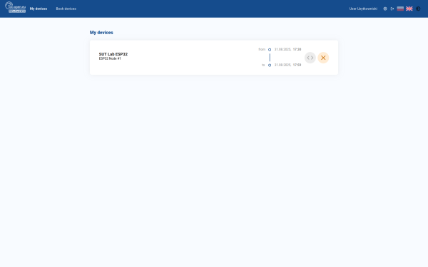 Select the device from the list. Note that you may have access to multiple laboratories, devices, and technologies. Each device represents specific features, so check carefully with the documentation and scenarios you will implement to determine the necessary hardware components for your lab work. In case of doubt, contact the supervisor. A sample list with ESP32 laboratory devices is present in the figure 3.