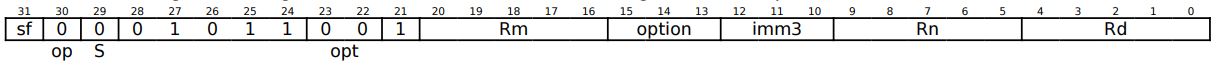 | UXTW or SXTW | Unsigned/Signed word (32-bit) is extended to double word (64-bit) |