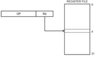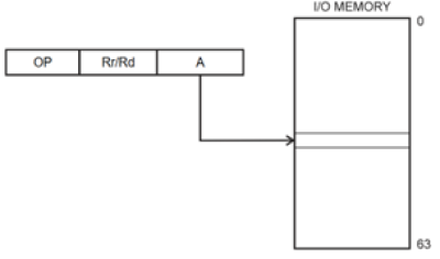 Operand address A is contained in the instruction word. Rr/Rd specifies the destination or source register.