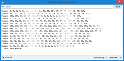 ja seejärel loop funktsioonis soovitud kohas käsk andmete jadaporti saatmiseks, et neid saaks läbi jadapordi monitori kuvada arvutiekraanile.