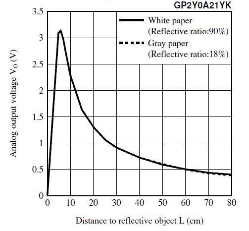 Anduri väljundiks on 2,7-0,5 V (vastavalt vahemaale) analoogsignaal. Anduri ühendus on näidatud joonistel 1 ja 2. Tähelepanu tuleks pöörata anduri väljundile (joonis 1), kus anduri väljund vastab kahele erinevale kaugusele. See tähendab, et kauguse täpseks tuvastamiseks peab arvestama nii signaali kaldega kui ka liikumissuunaga või füüsiliselt ellimineerima tuvastatava objekti sattumise lähemale, kui anduri dokumentatsiooni järgne minimaalne mõõtekaugus.