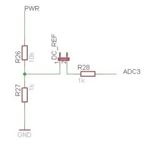 (Alates versioon 1.2) / Lisaks on võimalik Kombo plaadi toitepinget mõõta kasutades komboplaadil asuvat sildühendust (jumper) DC_REF. Kasutades seda, ühendatakse ADC3 viik plaadil oleva pingejaguriga, ning siis on võimalik mõõta näiteks roboti akupinget sõidu ajal.