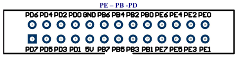 • Grupeeritud AVR viigud (1: pordid D, B, E; 2: pordid G, C, A; 3: port F)