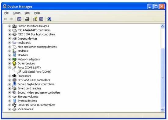 Vajadusel kontrollida milline port omistati USB konverterile (sõltub palju virtuaalseid porte on arvutisse eelnevalt paigaldatud ja kasutusele võetud). Selleks avada Windowsis 'Device manager' (Pilt 2) ja pordid (Pilt 3).