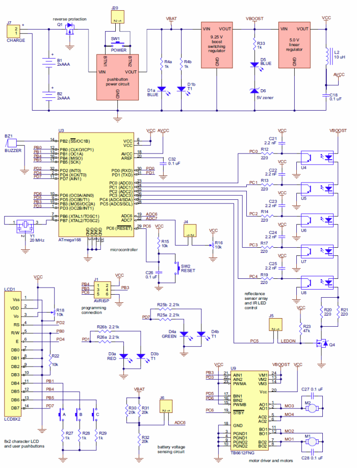 3Pi kere on üks tervik kahepoolne trükkplaat, mille peale on pandud kõik vajalikud komponendid. Lisaks on eraldi võimalik roboti külge kinnitada 8×2 tähemärgiline LCD moodul. Kui LCD moodulit ei kasutata, siis on võimalik kahe laienduspordi (LCD pistik ja mootorite vaheline jootmata pistik) kaudu 3pi peale lisada palju erinevaid andureid ja täitureid. Terve roboti trükkplaat on osaliselt ka prototüüpimisplaat, sest sisaldab palju auke, kuhu saab joota erinevaid komponente.