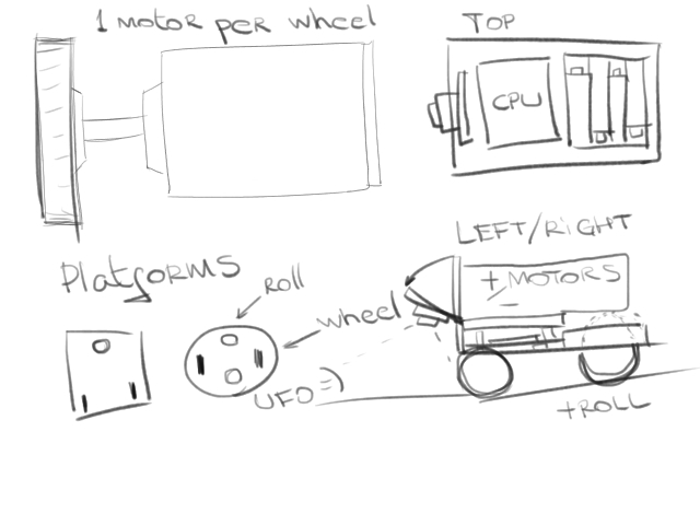 Esiplaan oli kasutada kontrollerit, driverit, alalisvoolumootorit. Aga mugav kaamerakonstruktsioon annab võimalust ehitada robotit ainult kahe ümberehitatutega servomootoridega.