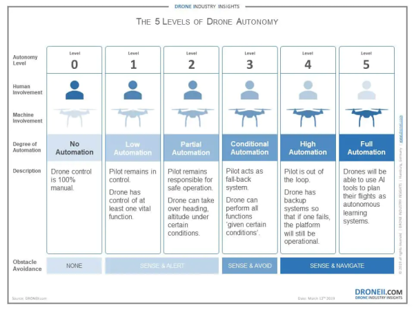 Levels of autonomy in drone technology are typically divided into five distinct levels, each representing a gradual increase in the drone's ability to operate independently.