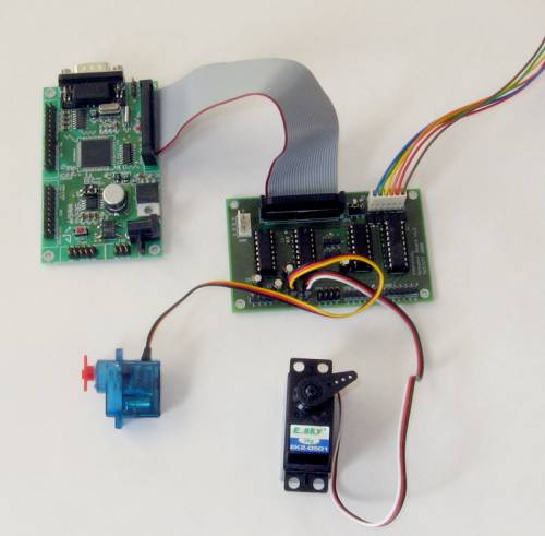 3. Verbinde den RC Servomotor mit dem Actuator-Board (siehe Bild 2). Anmerkung: Das Signal-Kabel (normalerweise Geld oder Weiß) befindet sich am äußeren Rand des Boards.
