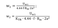 Taking into account geometrical parameters shown in figure 3.13 and a ratio of the voltages of the primary and secondary windings U<fs xx-small>w1</fs>/U<fs xx-small>w2</fs> =K<fs xx-small>TR</fs>, we can get
