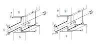 If the conductor crosses the magnetic force lines then in accordance with Faraday’s Law an EMF is induces in the conductor. The constant magnet induces magnetic flux Φ1 the density of which is B1, and the conductor moves normally to its force lines (fig.1.7). The EMF induced there is
