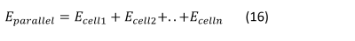 As the capacity rating is increased, the C-rate is increased proportionally as well, resulting in higher permissible charge/discharge current levels. Similarly, as in series connection, the total energy of a parallel connection is equal to the sum of individual cells.