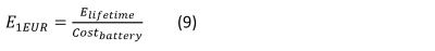 For economical perspective, Elifetime can be divided by the price of the battery to estimate how much energy will be delivered per unit of currency as shown in equation: