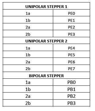 | 3 | 1a | PE0/PE4 | 1b | PB2 |