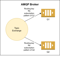 • Topic Exchange (amq.topic); Topic Exchange works similarly to MQTT topic subscriptions: an AMQP queue bound to the Topic Exchange defines a pattern rather than the fixed name, and messages with the matching routing key are copied to the queue (7). It is great for multicasting.