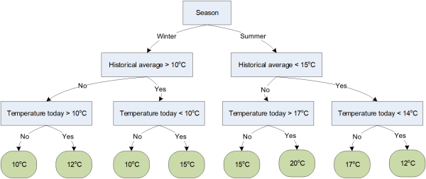 Random forests Random forests are among the best out-of-the-box methods highly valued by developers and data scientists. For better understanding of the process, an imaginary weather forecast problem might be considered, represented by the following true decision tree: