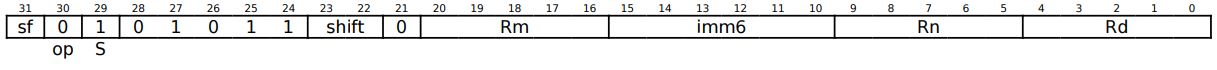 For the UXTX, the LSL shift is preferred if the ‘imm3’ bits are set from 0 to 4. Other ranges are reserved and unavailable because the result can be unpredictable. Moreover, this shift is only available if the ‘Rd’ or the ‘Rn’ operands are equal to ‘11111’, which is the stack pointer (SP). In all other cases, the UXTX extension will be used. In the conclusion for this instruction type, it is handy when the operands are of different lengths, but that’s not all. The shift provided to the second operand allows us to multiply it by 2, 4, 8 or 16, but it works only if the destination register is 64 bits wide (the Xn registers are used). The shift amount is restricted to 4 bits only, even when the ‘imm3’ can identify the larger values. Also, the SXTB/H/W/X are used when the second operand can store negative integers.