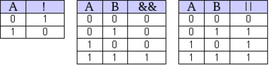 Loogilised tehted on eitus (!), loogiline korrutamine (&&) ja loogiline liitmine (||). Kui kasutada koos erinevaid loogikatehteid siis täidetakse esmalt eitus ja seejärel vasakult paremale järjekorras loogiline liitmine ja korrutamine. Samuti võib kindla tehte eelistamiseks kasutada sulge.
