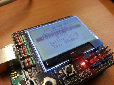 char *menu_strings[MENU_ITEMS] = { "ITT Group OU", "www.ittgroup.ee", "Akadeemia tee 21", "B-127" ,"Tallinn 12618","Tel. 6566614"};