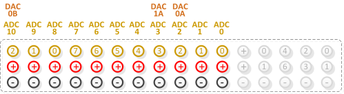 Lisaks on võimalik Kombomooduli toitepinget mõõta. Selleks tuleb sillata Kombomoodulil asuv sildühendus (inglise keeles jumper) VBat. ADC0 viik on sellisel juhul ühendatud plaadil oleva pingejaguriga. Seda võimalust võib näiteks kasutada roboti akupinge monitoorimiseks sõidu ajal.