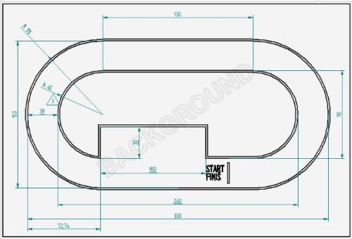 Antud ülesanne koosneb mitemtest etapist: 1.Sinu ülesandeks on ehitada robot mis suudab läbida kõige kiiremini raja. Stardiala ja lõpetamine on märgitud kollase 19 mm teibiga mis asetseb rajaga risti. Ringraja laius on 30 cm lai. Raja lõpus asetseb PITSTOPi ala. Takistusraja servad on tehtud 19 millimeetri laiusest mustast isoleerteibist. Peale roboti paigutamist stardijoonele ja roboti käimalülitamist peab masin seisma 5 sek enne liikuma hakkamist. Robot ei tohi kusagilt ületada rada. Raja skeem on toodud järgneval joonisel.