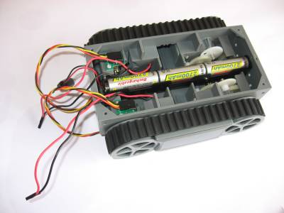 Järgmiseks sisestame akupessa akud, ning asetame selle roboti keskele, nagu näha pildil.