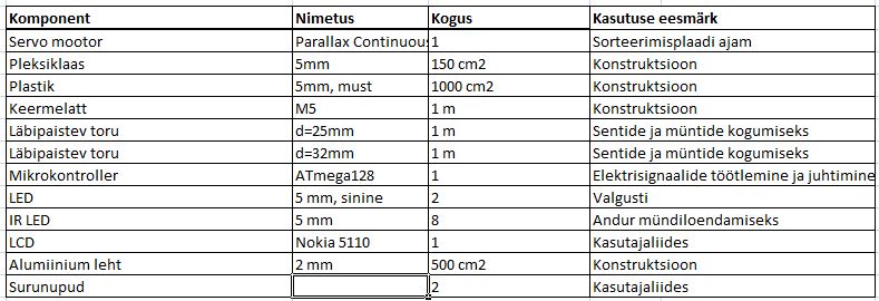 Luua seade, mis suudab eraldada euromünte erinevatesse topsidesse ning kuvab seejärel lcd-le kogusumma.