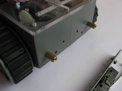 Kõigepealt tuleb lahti kruvida alusplaat. Seejärel tuleb kinnitada vahepuksid roboti kere välimistesse aukudesse (Vt pilte):