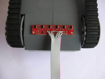 Järgmiseks tuleb plaat kleepida roboti alla. Soovitatav on kleepida see võimalikult ette ning keskele, et lihtsustada joone järgimist:
