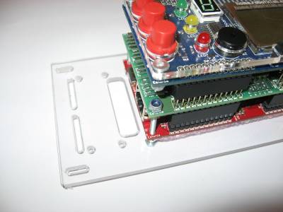 Kõigepealt kasutades pikki M3 kruve tuleb ehitada kontroller moodulitele hoidja. Selleks kasutame keskmisi auke. Soovitatav on kasutada kontrolleri plaati ennast, et leida õiged augud.